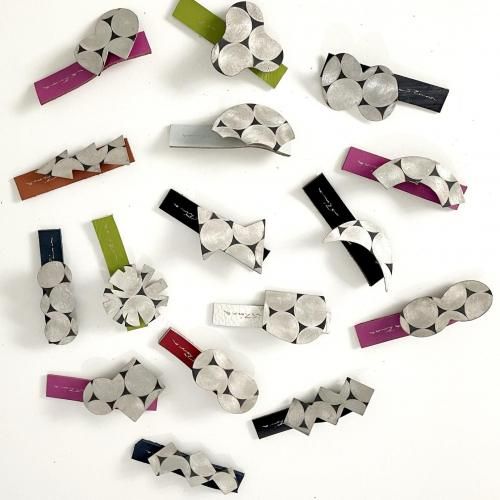 金属そのものの色です。図柄も即興で一つずつドローイングして
